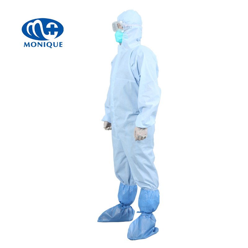 Sebagai pengilang profesional, Anhui Monique Medical Materials Co., Ltd. ingin memberikan anda Gaun Keseluruhan yang Diluluskan FDA Perlindungan Pakai Pakai. Gaun Keseluruhan yang Diluluskan FDA Perlindungan Pakai Pakai diperbuat daripada 80g SFS, Yang ringan dan bernafas untuk dipakai dan mempunyai kesan perlindungan yang baik, Sut pelindung menggunakan jahitan halus dan spilicing yang berhati-hati, yang selesa dipakai, dan ia tidak lembap untuk dipakai untuk masa yang lama. Cuff, kaki seluar dan pinggang pakaian pelindung disediakan dengan reka bentuk penutupan jalur elastik untuk menjadikan pakaian pelindung lebih sesuai dan memastikan kesan perlindungan.
